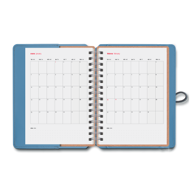 Planificá tus días con la agenda vacavaliente.Diseño Atractivo y funcional con un anillado extra firme que garantiza una experiencia de escritura a 360 grados. Es un producto sustentable y duradero, hecho a mano con cuero 100% reciclado. Cuidado del producto: Limpia el producto con un paño húmedo.