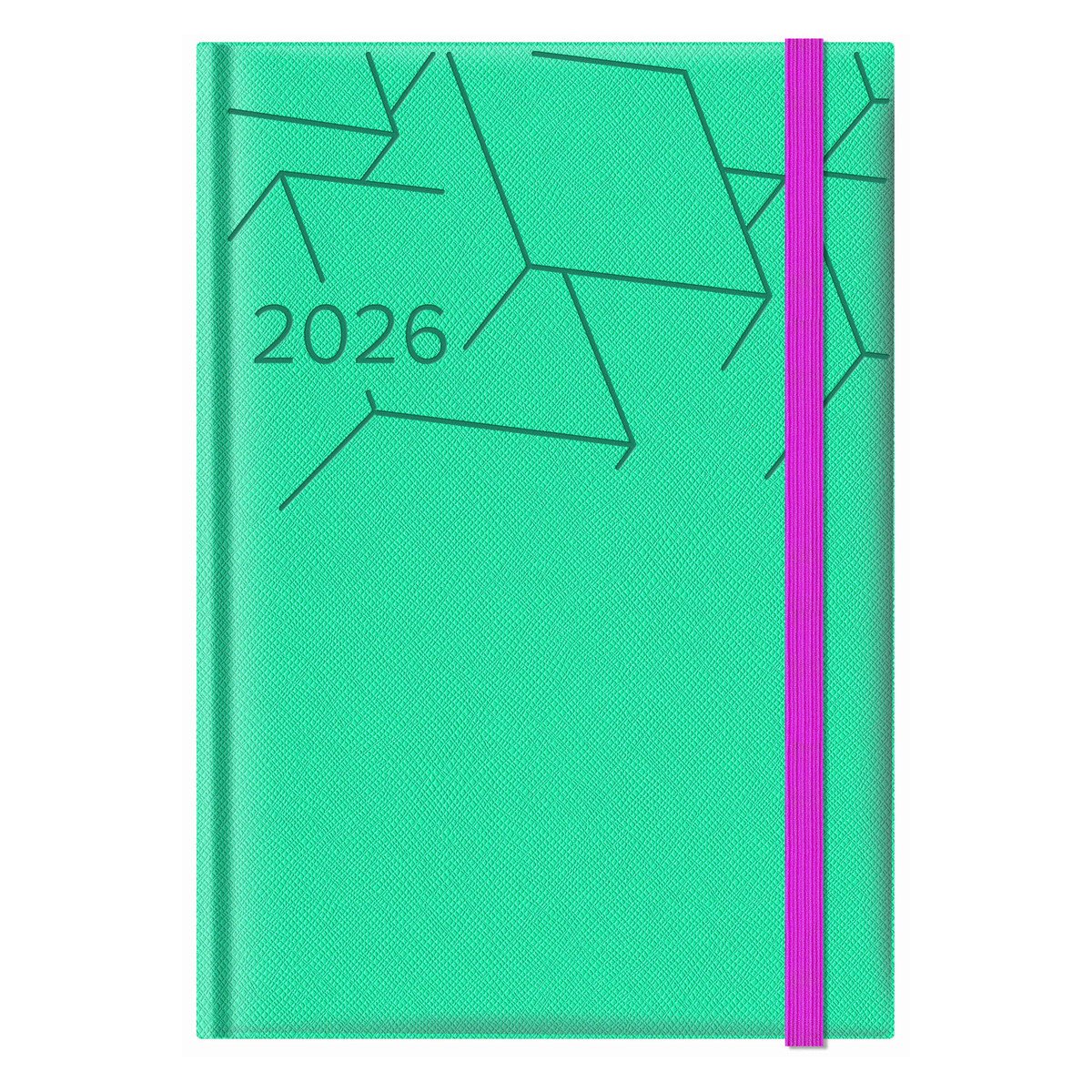 Agenda N°7 Diaria Adria verde agua con elastico fucsia encuadernada Talbot