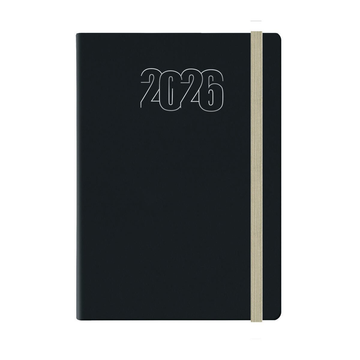 Agenda N°7 Diaria Winner borde pintado negro con elastico natural encuadernada Talbot