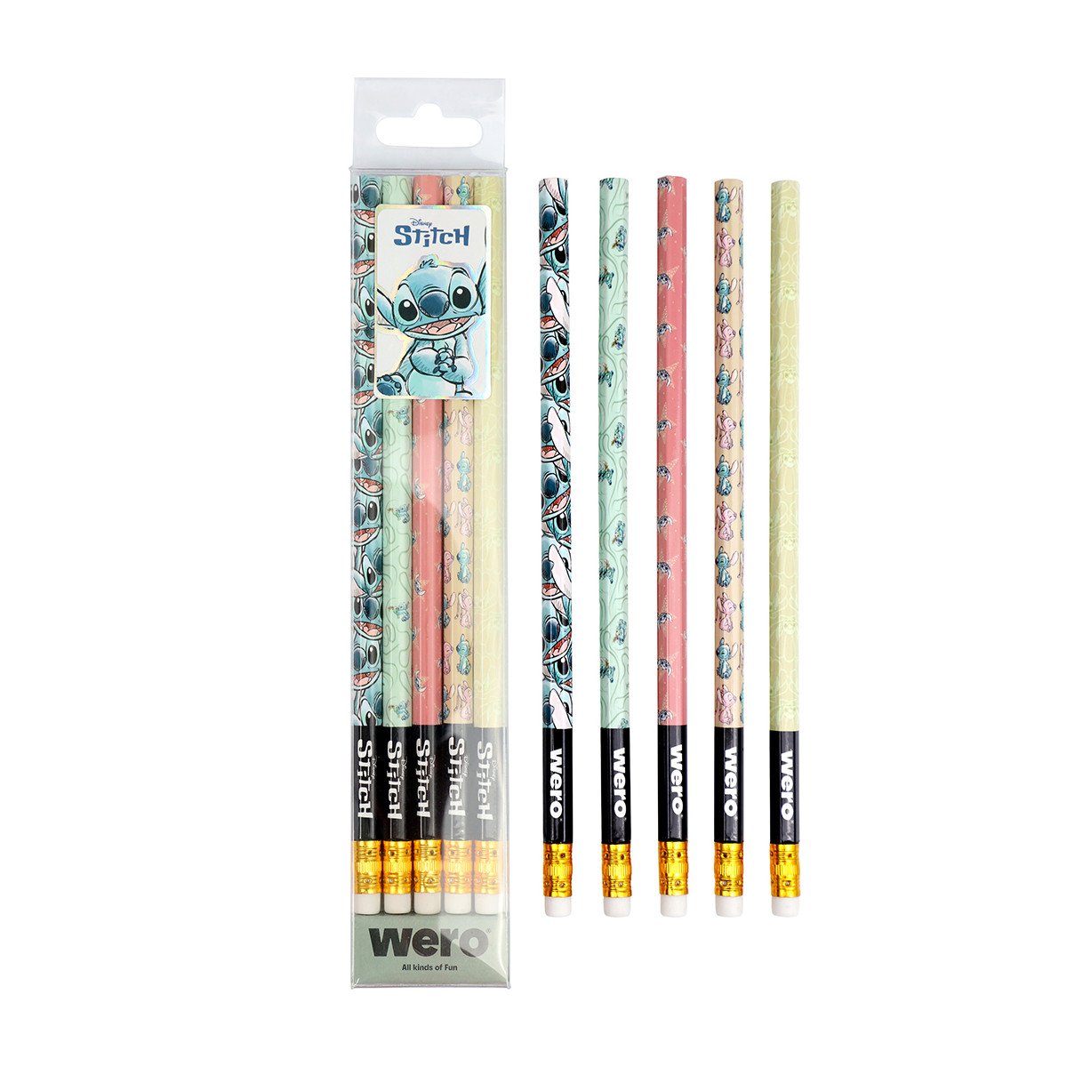 Set de Lápices negros con goma Stitch x 5 unidades