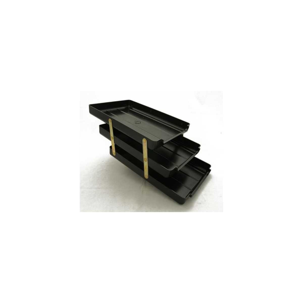 Bandeja plástica negra portapapeles de 3 pisos tamaño oficio.