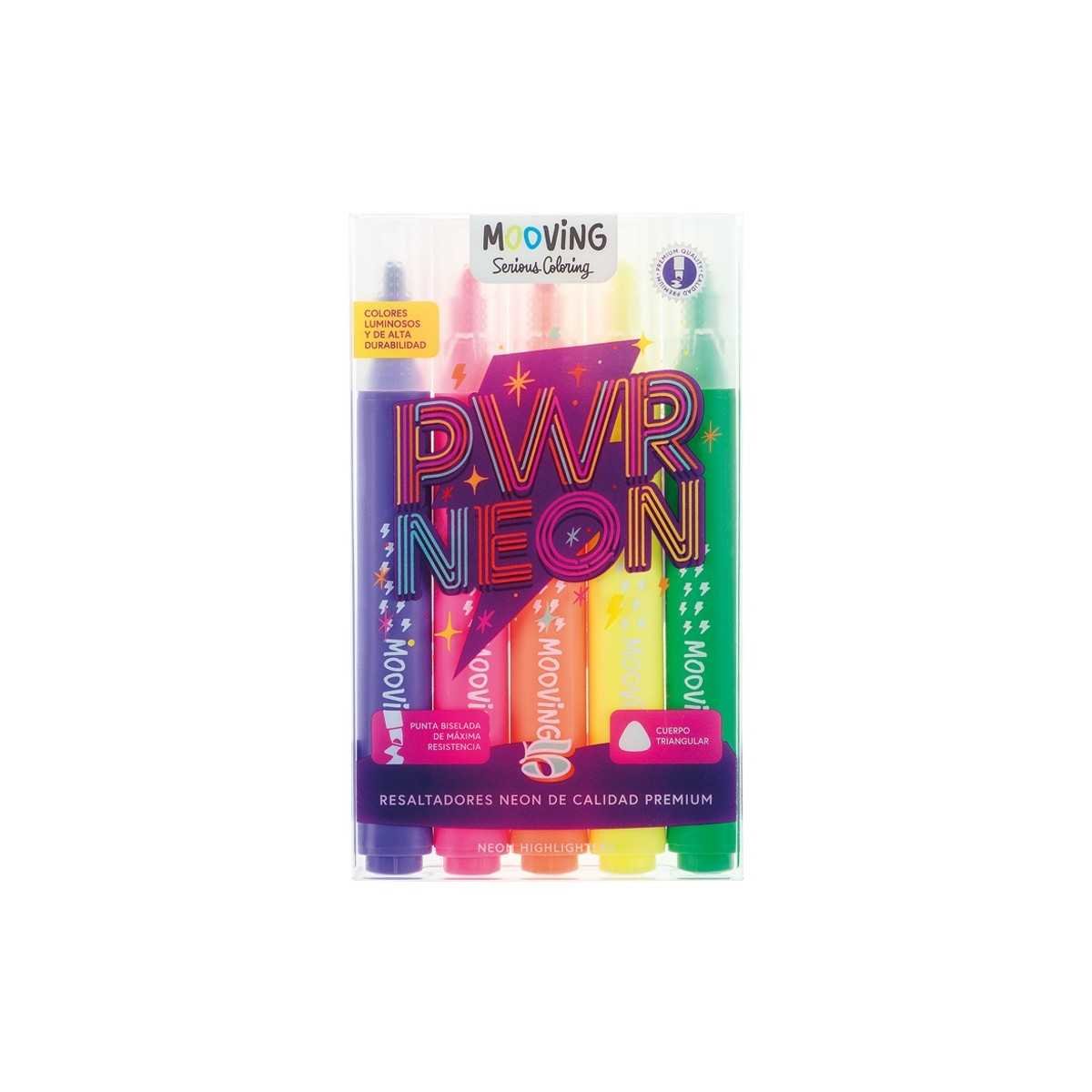 Resaltador Premium POWER NEON x5 colores punta biselada Mooving