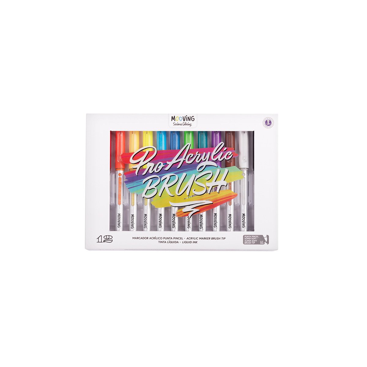 Marcadores acrilicos Pro Acrylic Brush x12 colores punta pincel Mooving